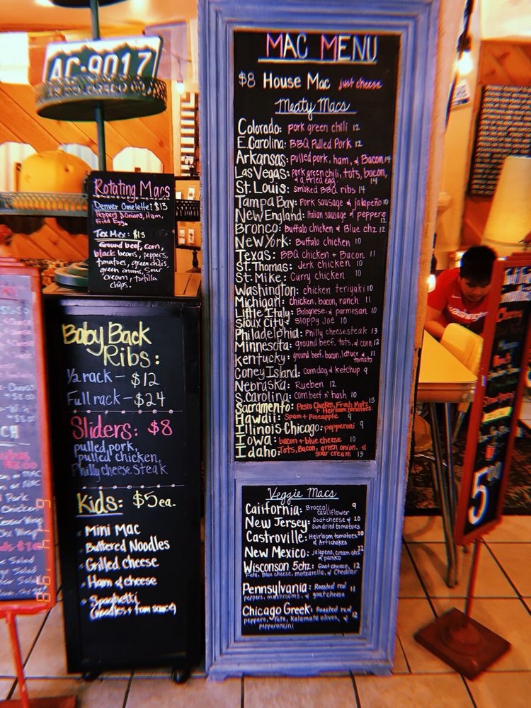 Mac-Cheros is Mac Nation's Twist in your traditional dish. Made with refried beans and cheddar rolled in a flour tortilla. Then smothered with Colorado Native Green Chilli and Eggs over easy!
